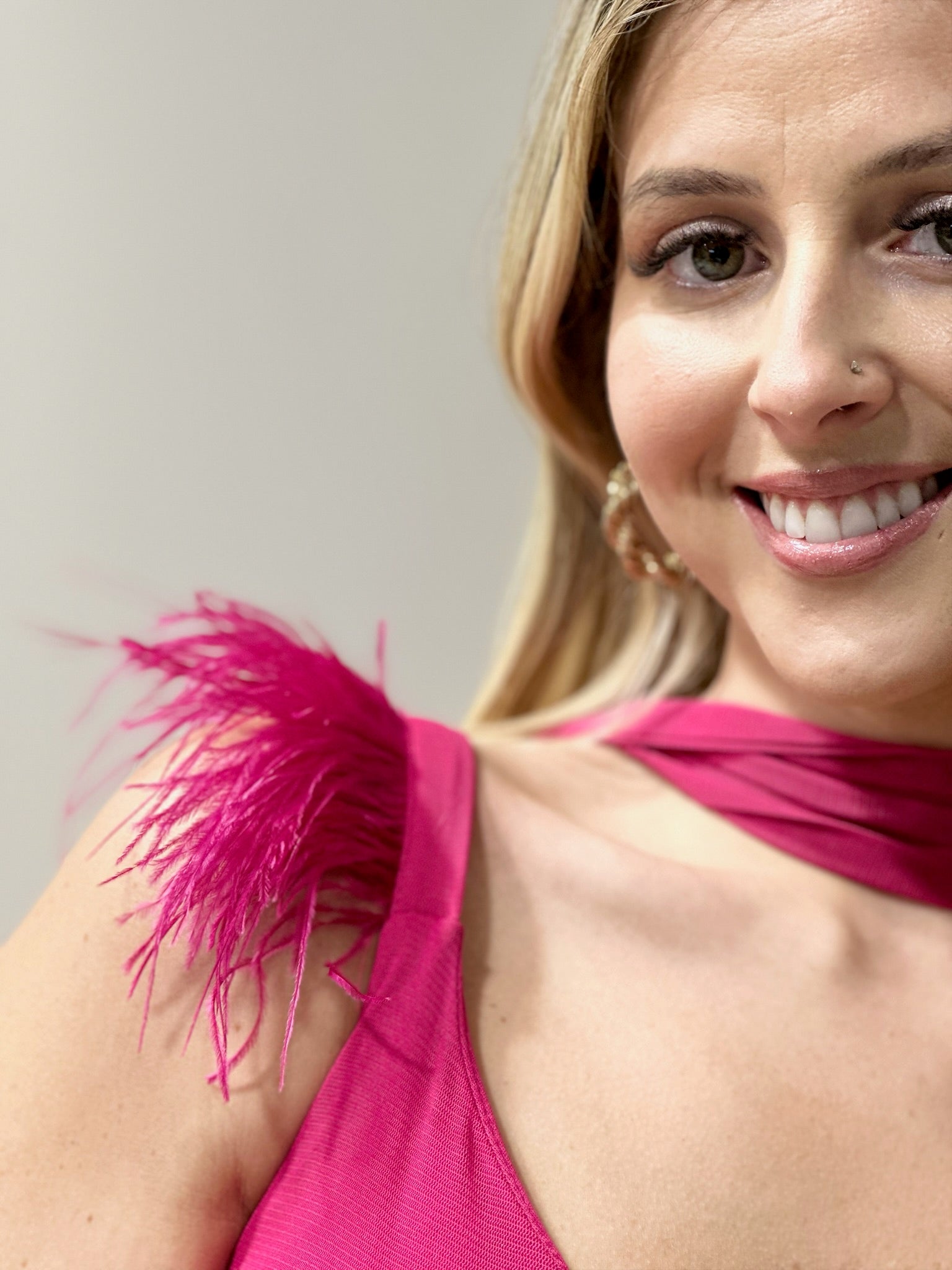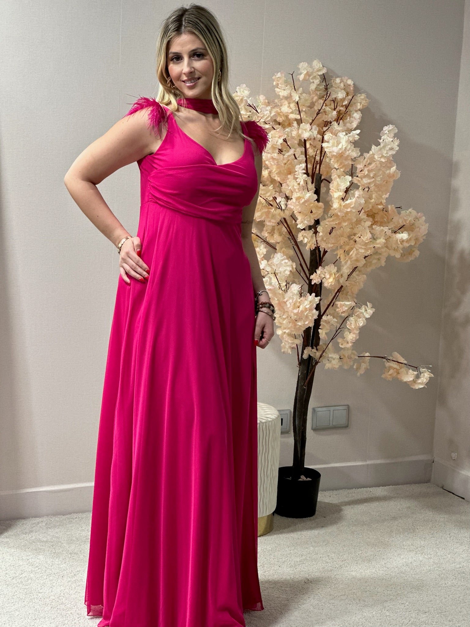 Vestido Midi de organza, com detalhes florais e botões de pérolas.